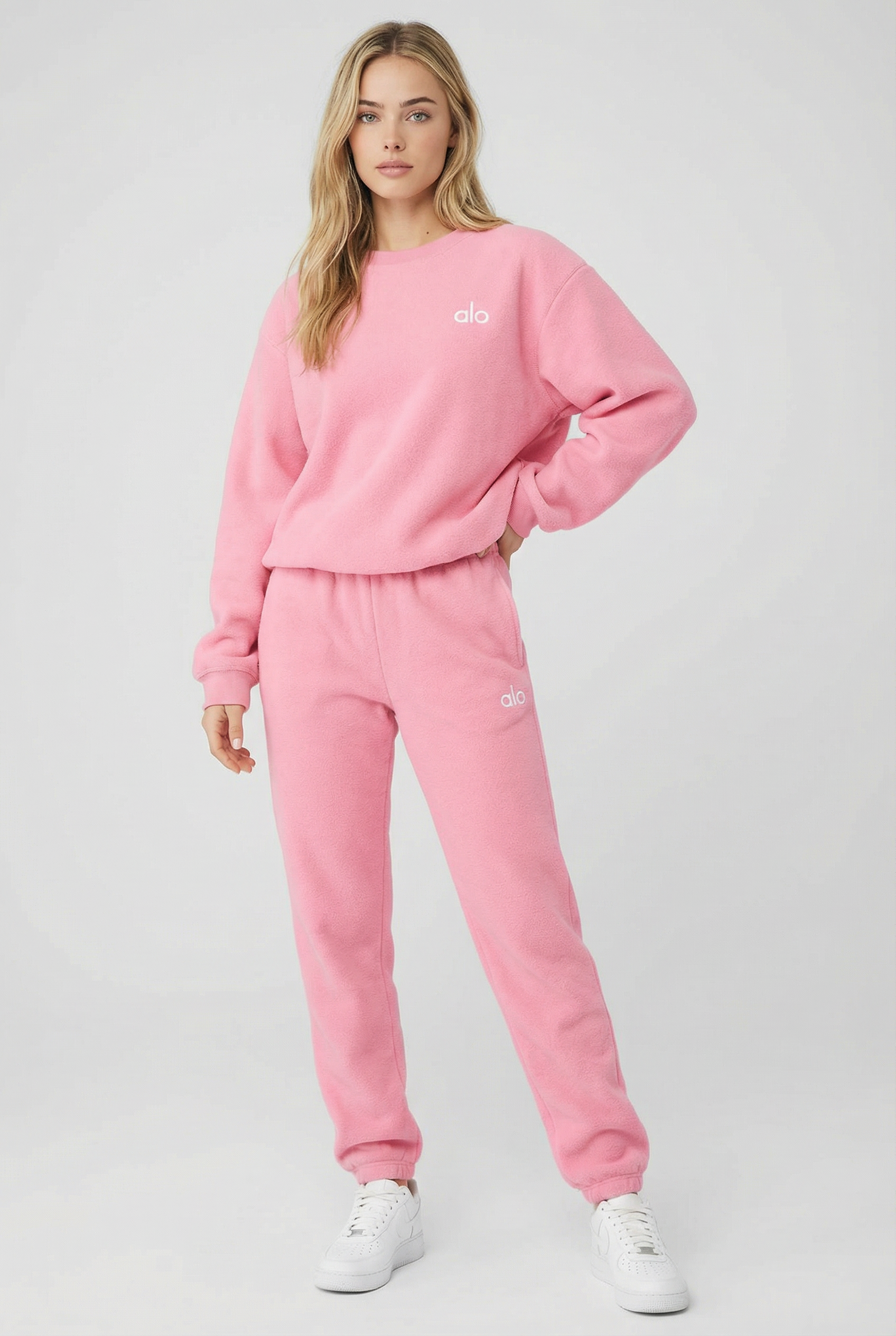 A lounge set designed to keep the silhouette relaxed but still refined. The crewneck falls clean with soft volume, while the jogger sits easy at the waist and lengths the line through the leg — effortless, polished, and made for the Pilates off-duty look.